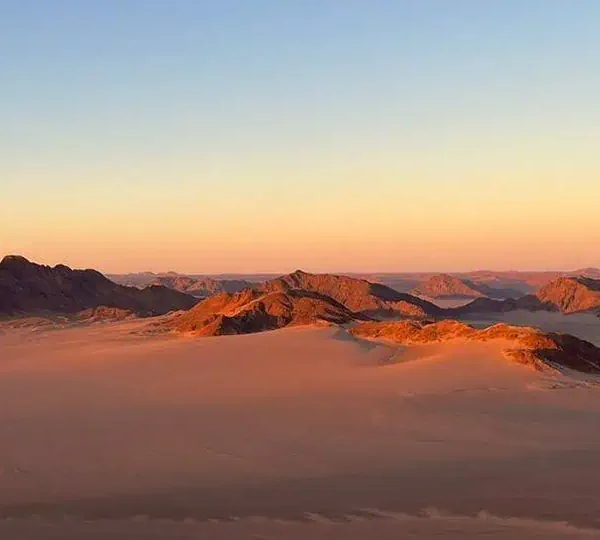 Dès les premières lueurs du jour, partez en safari dans une réserve privée pour observer springboks, oryx, girafes et autruches dans un décor de sable rougeoyant. En fin d’après-midi, grimpez au sommet d’une dune pour un apéritif face à l’immensité du désert. L’ambiance y est magique, presque surnaturelle.
